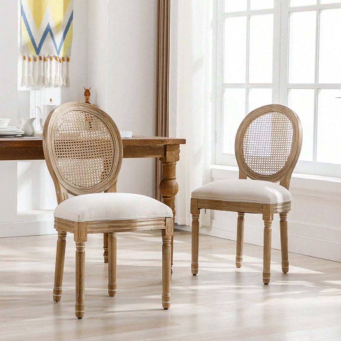 Wooden Dining Room Chairs, French Cane Round, with Round Back - Smily Cart