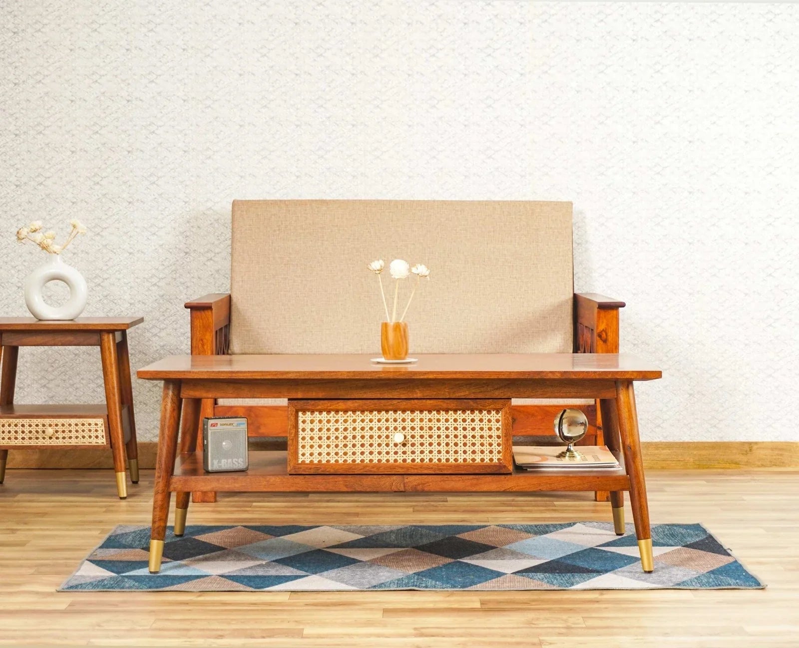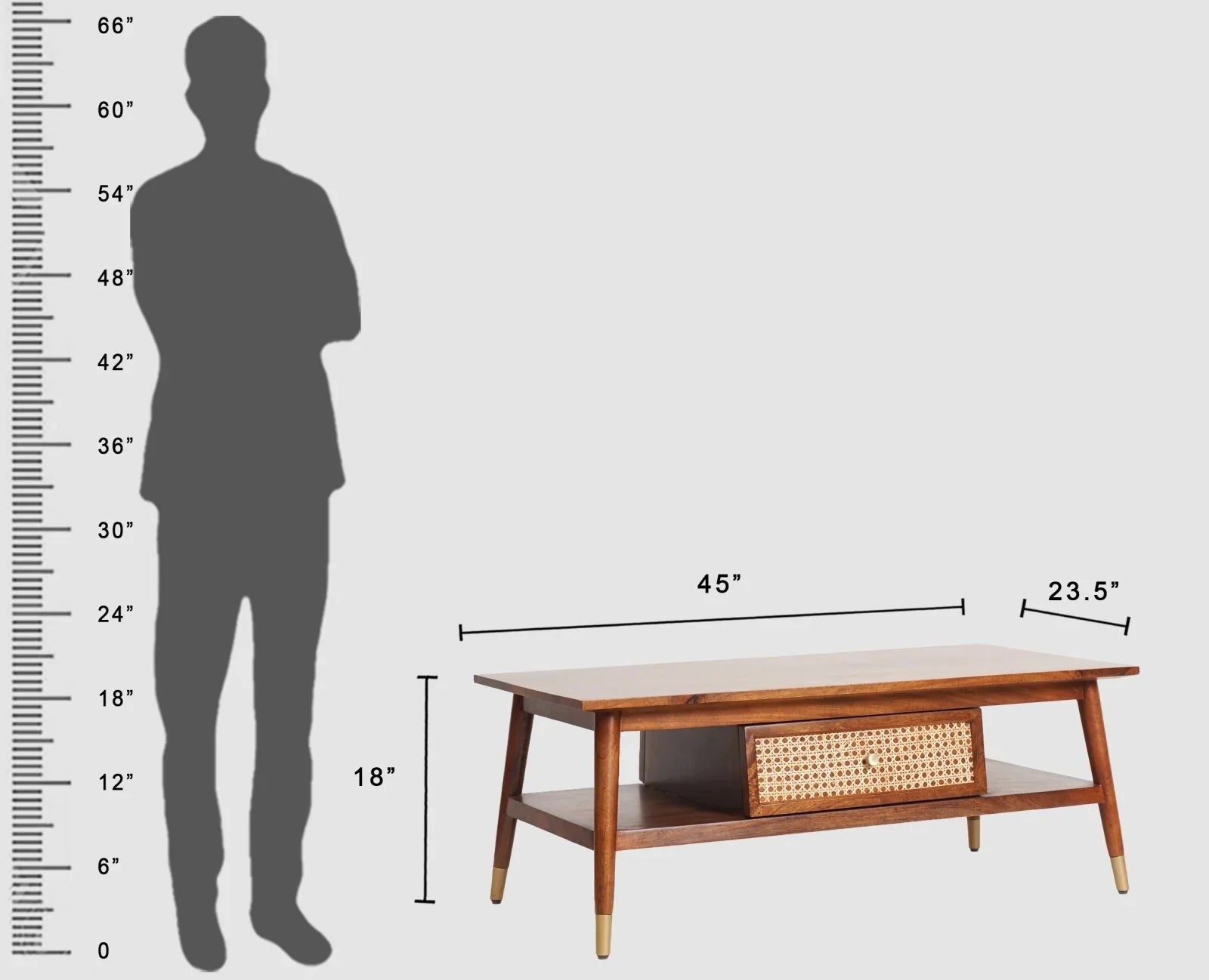 Bring a touch of natural elegance to your living room with this Solid Wood Rattan Coffee Table. Beautifully crafted from premium solid wood and accented with handwoven rattan, this table combines durability with boho charm. The spacious tabletop is perfect for decor or daily use, while the built-in drawer provides convenient hidden storage for remotes, magazines, or small essentials. Its clean lines and organic textures make it a versatile centerpiece for any modern, rustic, or coastal home.