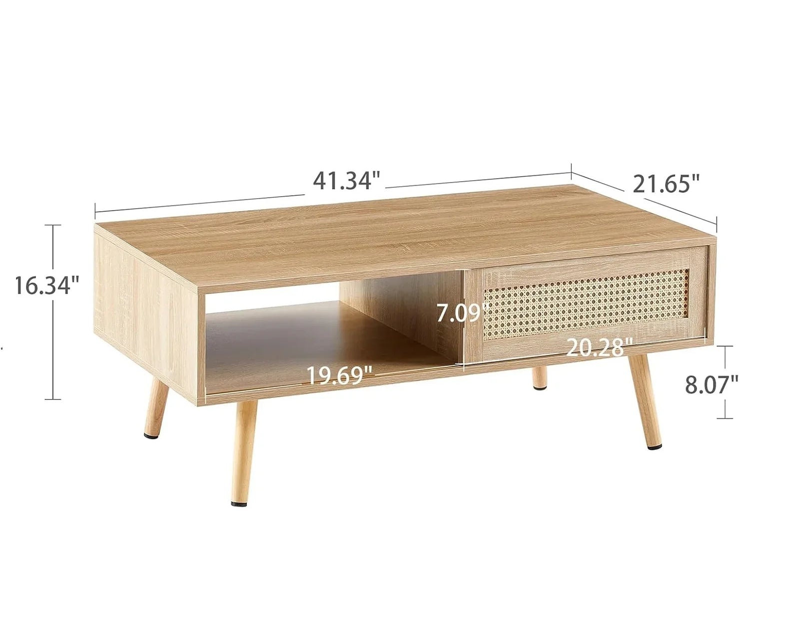 Elevate your living space with the exquisite charm of this Solid Wood Luxury Rattan Coffee Table. Expertly handcrafted from premium solid wood and detailed with natural rattan accents, this table blends timeless elegance with functional design. Its spacious top and airy construction make it a standout centerpiece for any modern, boho, or classic interior.