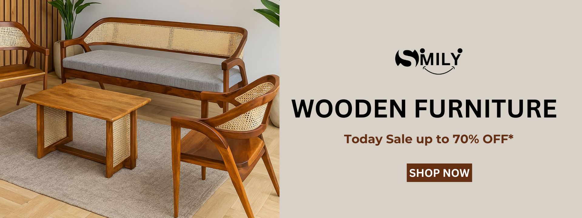 Smily Cart Solid Wooden Chair Rattan Arm Chair for Living Room